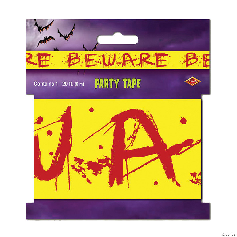 Perfect for decorating your front porch, lamppost and banisters for Halloween! Yellow tape with the word Beware written in red. Indoor/Outdoor use. Polyethylene. 3 ft.H x 20 ft.W.Special Shipping Information: This item ships separately from other items in your order. This item cannot ship to a P.O. Box. This item may be subject to additional processing days.ITEM IS NOT ELIGIBLE FOR EXPEDITED SHIPPING