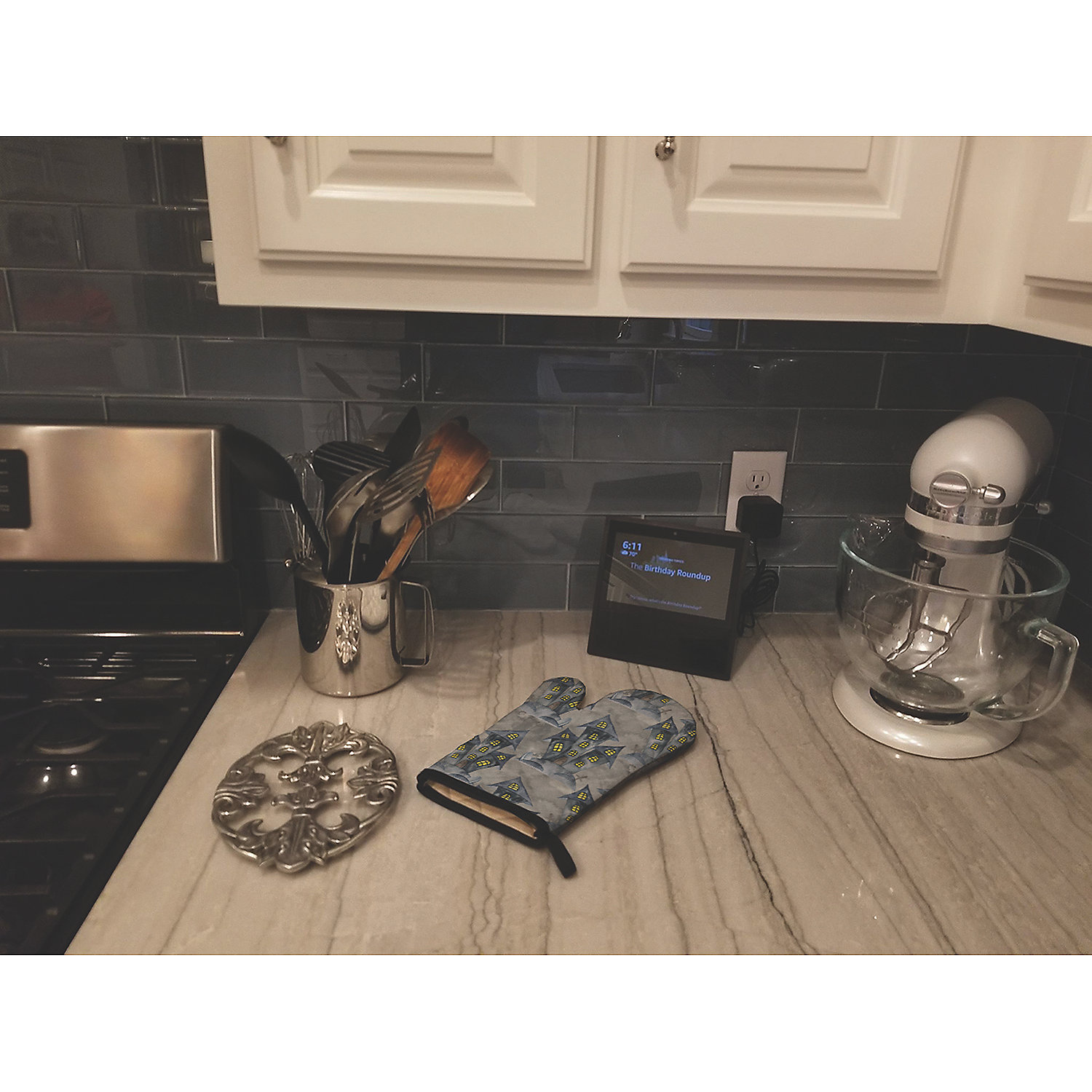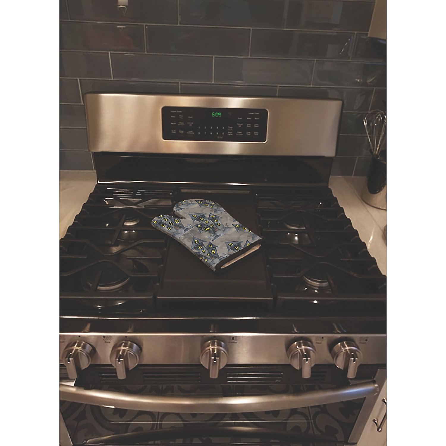 Watecolor Halloween Haunted House Oven Mitt. Celebrate Halloween with this Halloween Oven Mitt. Large Right Hand Thick Heat Resistant Oven Mitt. Five layers of quilted protection on each side of the mitt provide excellent resistance to heat. The beautifully printed artwork on the front of the mitt provides an extra statement to your current kitchen decor. Great for your favorite Mom, Chef or the best BBQer that you know. Measuring about 12 inches long and about 8 1/2 inches at it’s widest point. A Black bias tape trim finishes the oven mitt with a hoop to act as a hanger. This large oven mitt fits a very diverse size of hands This Oven Mitt is from Caroline’s Treasures Seasonal category of products.