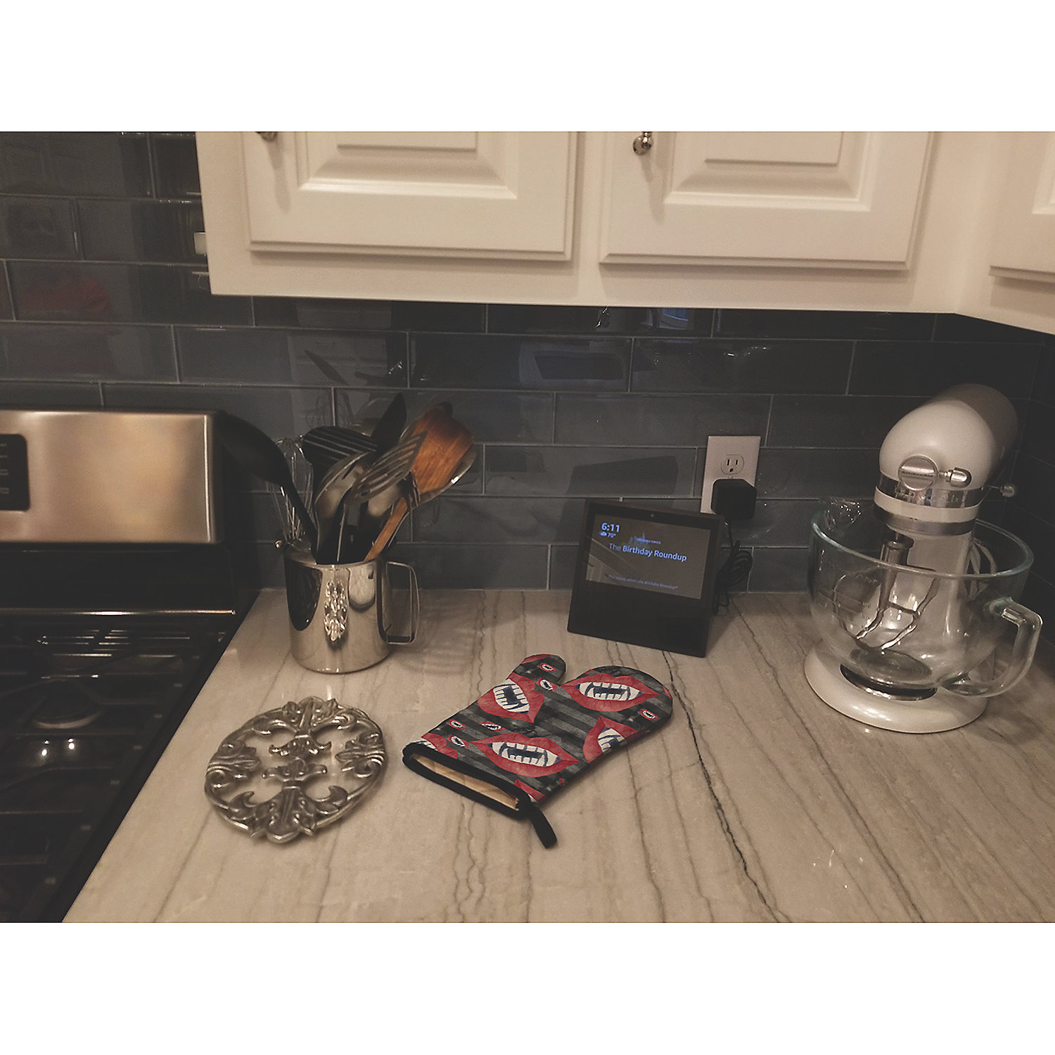 Watecolor Halloween Vampire Teeth Oven Mitt. Celebrate Halloween with this Halloween Oven Mitt. Large Right Hand Thick Heat Resistant Oven Mitt. Five layers of quilted protection on each side of the mitt provide excellent resistance to heat. The beautifully printed artwork on the front of the mitt provides an extra statement to your current kitchen decor. Great for your favorite Mom, Chef or the best BBQer that you know. Measuring about 12 inches long and about 8 1/2 inches at it’s widest point. A Black bias tape trim finishes the oven mitt with a hoop to act as a hanger. This large oven mitt fits a very diverse size of hands This Oven Mitt is from Caroline’s Treasures Seasonal category of products.