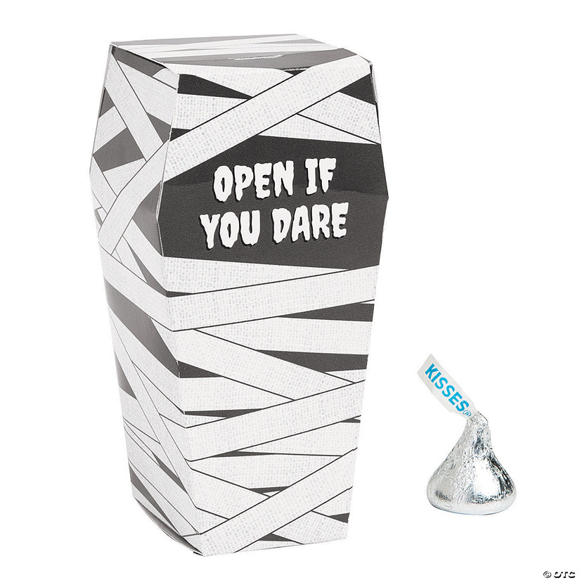 Do you dare open the coffin? Your guests will want to open this coffin after you fill it with fun treats! The perfect favor box for a Halloween party, these favor boxes are big enough to hold some small trinkets or candies but not so big that filling them will take up your entire party budget! Hand these out to trick-or-treaters if you want a big reaction from kids. Cardstock. 2 1/4″ x 2″ x 4 1/2″ SImple assembly required. © OTCCoffin Favor Boxes Instructions