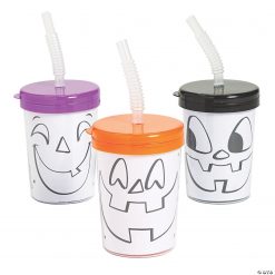 The hardest part about Halloween may just be waiting for the trick-or-treating to get started already! These color-your-own cups with lids and straws provide a fun Halloween craft activity — at home or at the class party — that kids can reuse year after year, as well as a great candy-alternative for trick-or-treating and trunk-or-treat events. Each plastic cup has 1 paper insert. 3 3/4″ 6 oz. Remove insert before washing. Hand wash only. © OTC