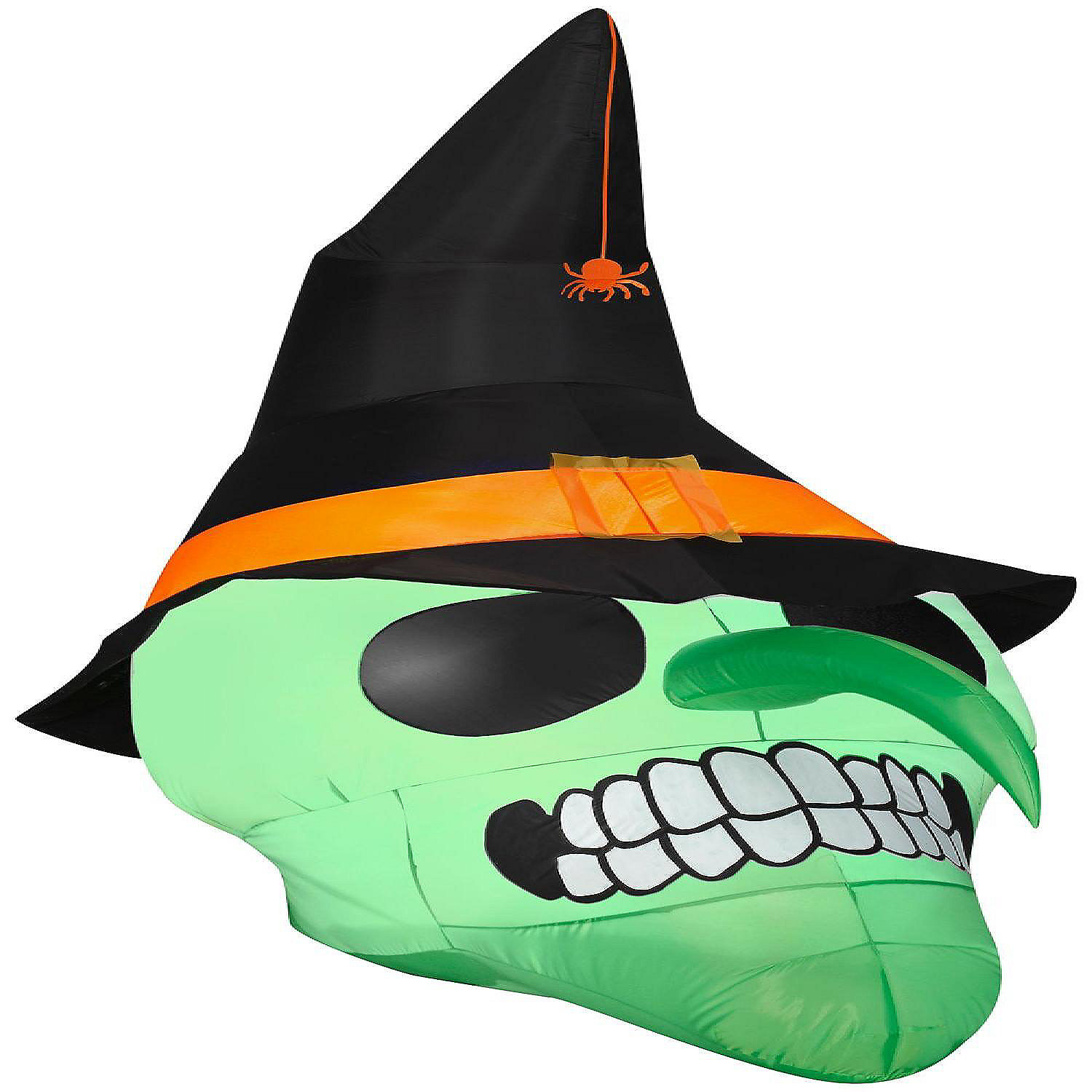 Greet your guests with this adorable Airblown® inflatable character. The green witch skull is perfect for any Halloween scene. Plug it in, stake it down and watch the magic of this Airblown Inflatable unfold!