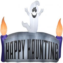 Greet your guests with this adorable Airblown® inflatable sign. The “Happy Haunting” sign features a friendly ghost. It self-inflates in seconds and comes with everything needed for easy outdoor setup. Just plug it in, stake it down and watch the magic unfold. Display this cute Halloween decoration as a standalone or combine it with other Airblown® Inflatables to create a custom scene.