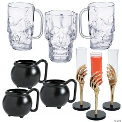 Scare up some bone-chilling fun at your Halloween party or other Spooktacular event when you serve your best concoctions in these fun glasses. Featuring iconic Halloween images like skulls and cauldrons, these cups are ready for your best brew! It’s up to you if you want to send this drinkware home as unique Halloween party favors or keep them on hand for the next frightful event. (36 pcs. per unit)Includes:• 12 Plastic Cauldron Mugs (3 3/4″ 12 oz. Not microwave safe. Hand wash only.)• 12 Plastic Clear Skull Mugs (5 1/4″ 16 oz.)• 12 Plastic Skeleton Hand Glasses (8 1/4″ 2 oz.)• Assortments are subject to change at any time and may vary from picture shown. Substituted items will be similar in nature.