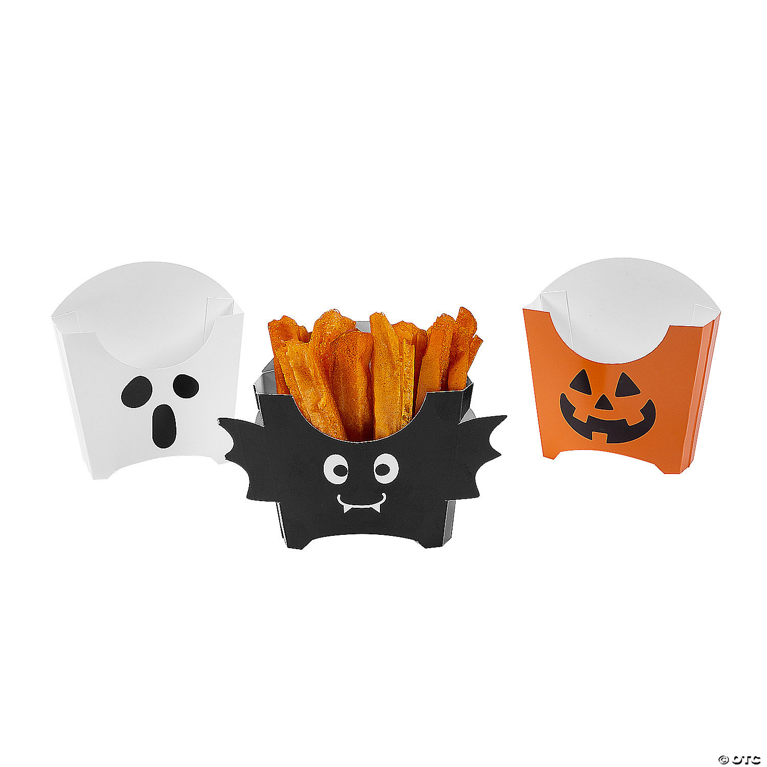 These sturdy boxes are just begging to be stuffed full of French fries, onion rings and other tasty treats! Pre-fill them or leave them on your buffet table for party guests to fill at their convenience. Makes a great addition to your Halloween party supplies, whether you’re hosting at home, school or the office! Cardstock. 3 1/2″