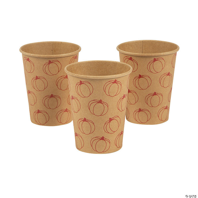 These pumpkin party cups scream fall! With their rustic brown design and little orange pumpkins, these cups would be a great addition to a fall festivity or Halloween party. Fill them up with punch, hot apple cider or any other beverage and serve alongside some fall goodies. Paper. (8 pcs. per unit) 3 3/4″ 9 oz. © OTC
