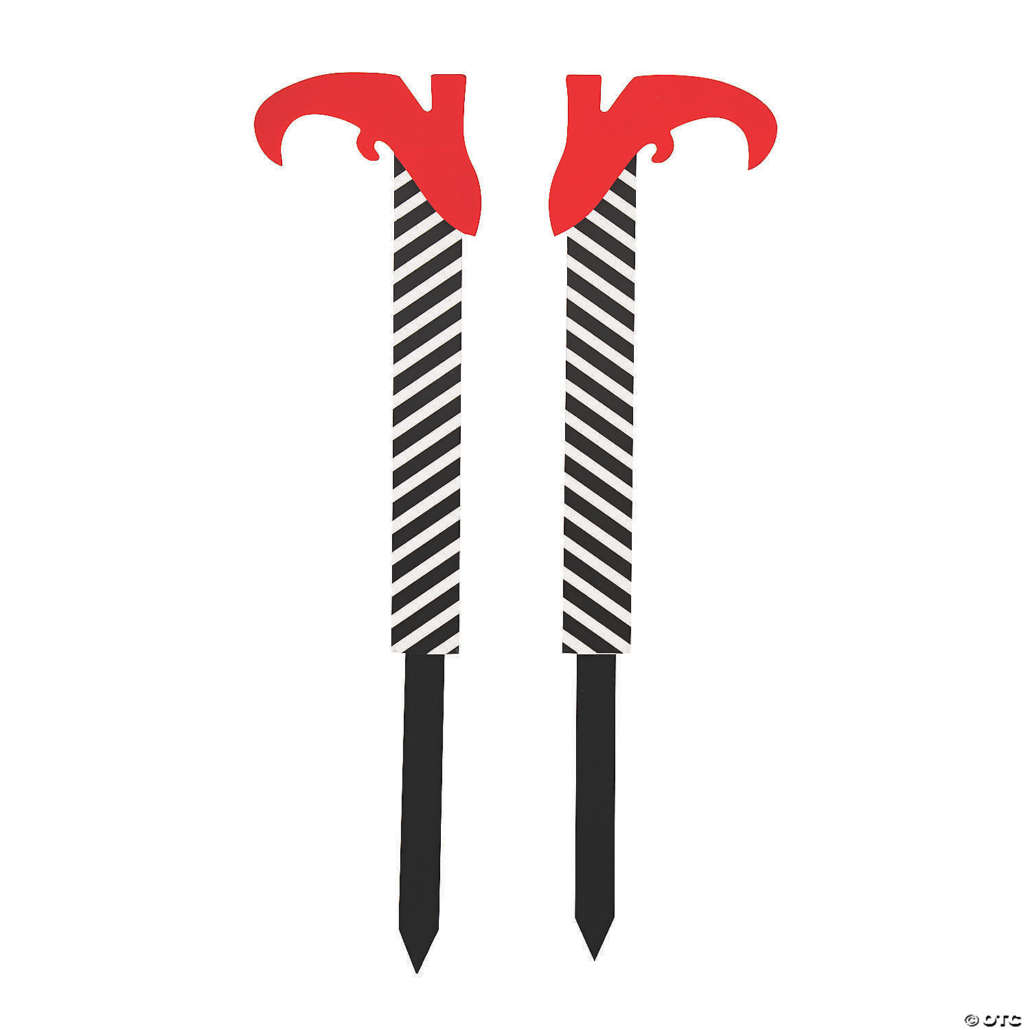 Woops! This witch should have paid better attention during broom-flying lessons! These silly Halloween decorations help get you into the Halloween spirit. A good way to decorate for Halloween without getting too creepy, trick or treaters will find these stakes funny and parents of young children will appreciate the non-gory decorations. Wood. (2 pcs. per set) 4 1/2″ x 18″ Simple assembly required.