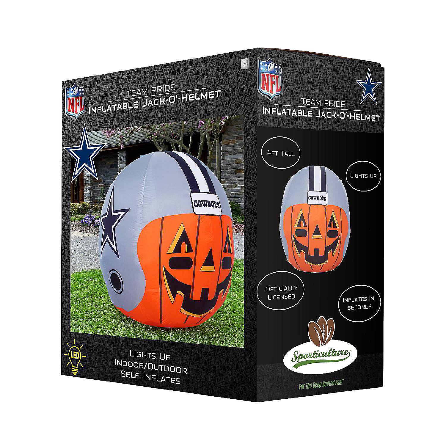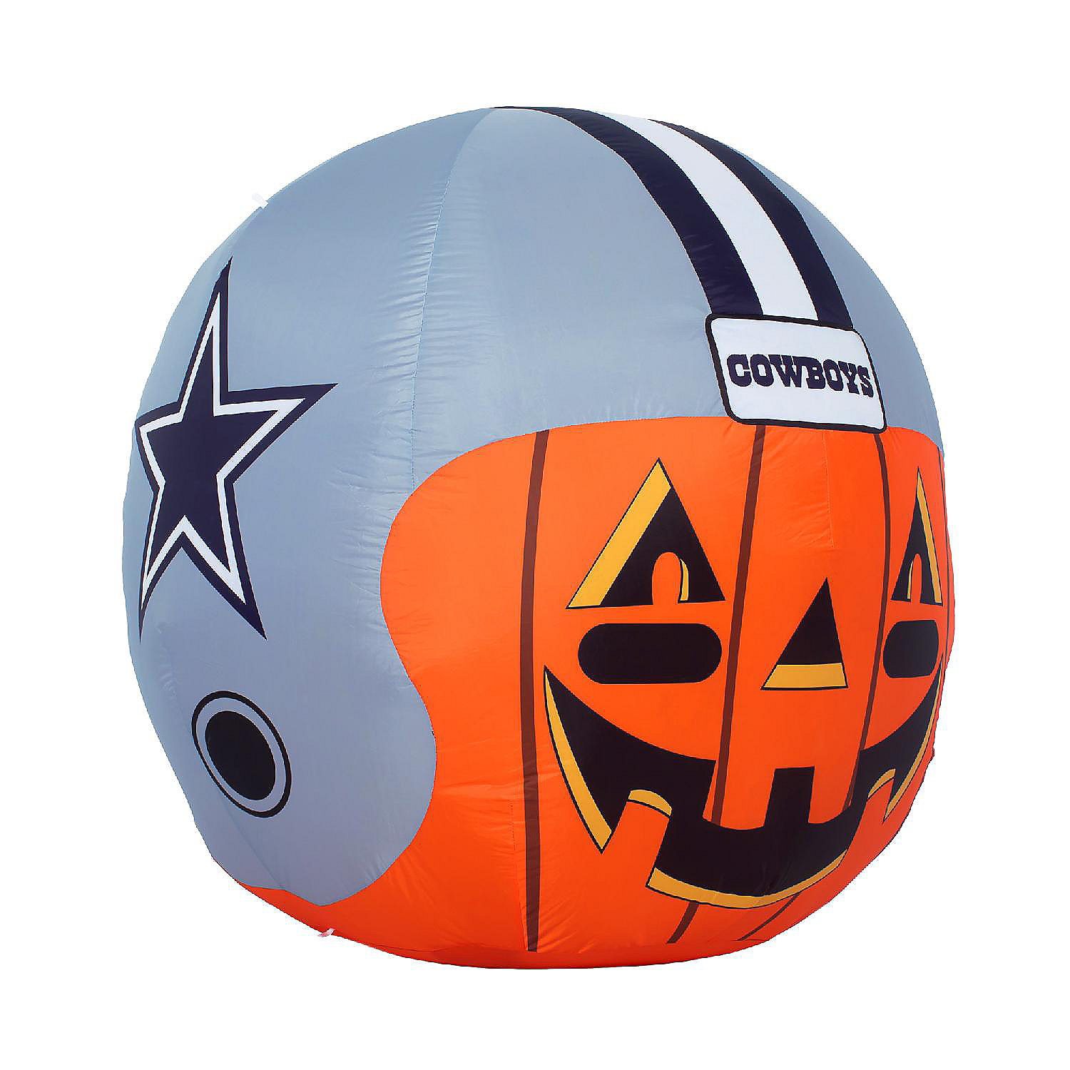 Get ready for fall, football and inflatable fun with the Team Pride Inflatable Jack-O’-Helmet! This four foot officially licensed pumpkin with jack-o’-lantern face and logo graphic helmet inflates in seconds, illuminates with internal LED lights, and deflates for easy storage. Made of durable weatherproof material, it’s the perfect addition to a front yard Teamscape and Halloween décor. Complete with tie down ropes and stakes, you are sure to be the envy of the neighborhood all season long! Makes the perfect gift For The Deep Rooted Fan!