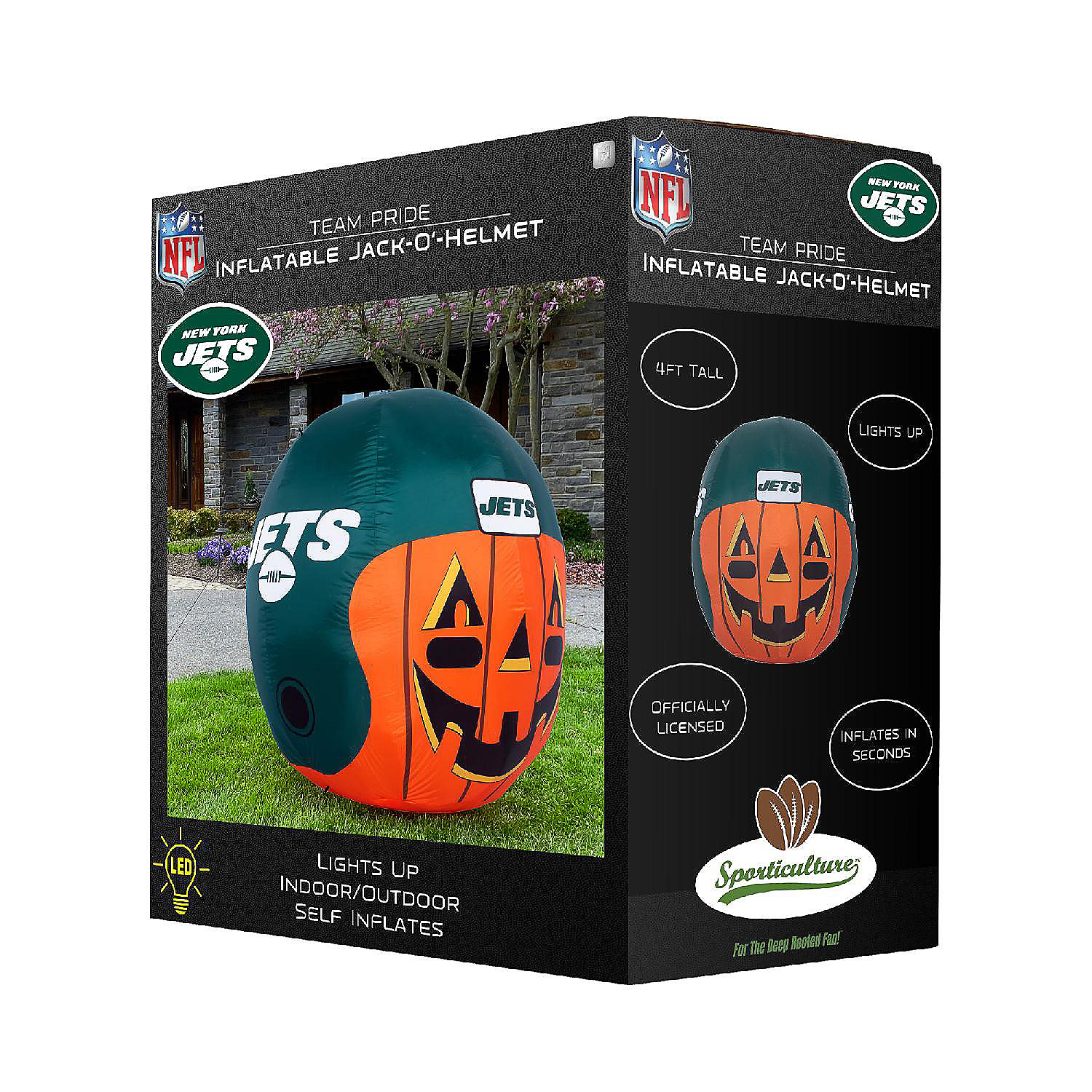 Get ready for fall, football and inflatable fun with the Team Pride Inflatable Jack-O’-Helmet! This four foot officially licensed pumpkin with jack-o’-lantern face and logo graphic helmet inflates in seconds, illuminates with internal LED lights, and deflates for easy storage. Made of durable weatherproof material, it’s the perfect addition to a front yard Teamscape and Halloween décor. Complete with tie down ropes and stakes, you are sure to be the envy of the neighborhood all season long! Makes the perfect gift For The Deep Rooted Fan!