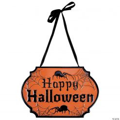 10″ Orange and Black “Happy Halloween” Cauldron Pot Metal Wall Sign