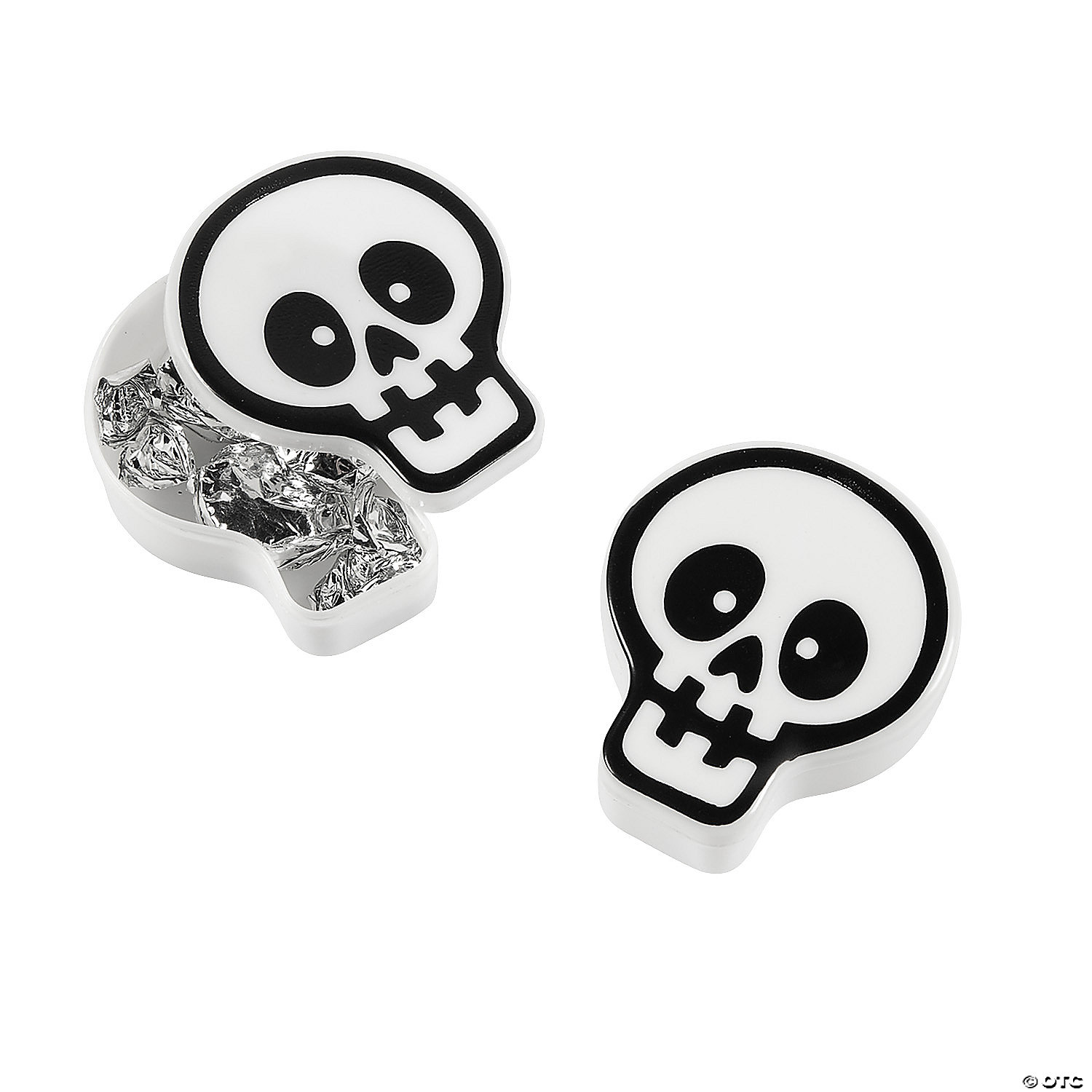 These skulls are quite the disguise! Fill these spooky containers with small candy (not included) or favors like tattoos and rings (sold separately on this website) and hand them out to kids during a Halloween party. They’ll be shaking its brains eager to hear and see what’s inside! Plastic. 2 1/2″ © OTC