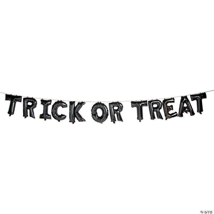 Set the scene for a spooky shindig! A must-have addition to Halloween party décor, this Mylar balloon garland reads “Trick-or-Treat” in seasonal black. Pair with orange balloons to really create a look that excites, delights, but doesn’t incite fright. This is perfect for a kids’ party or adult costume celebration when displayed behind the buffet or as part of a DIY photo booth backdrop. (3 pcs. per set) 3 ft. – 6 ft.